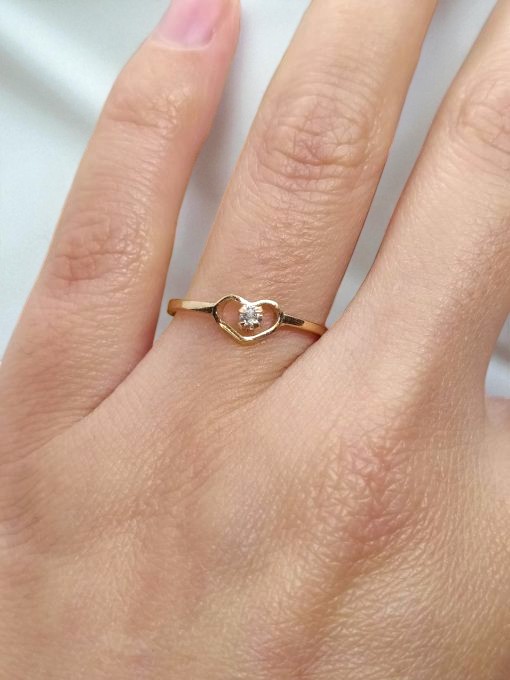 ¡Un símbolo de amor que te hará brillar! Anillo de oro de 18 quilates con forma de corazón y circón, pesa 1.3 gramos. Incluye caja de regalo y garantía de por vida sobre la calidad del oro.