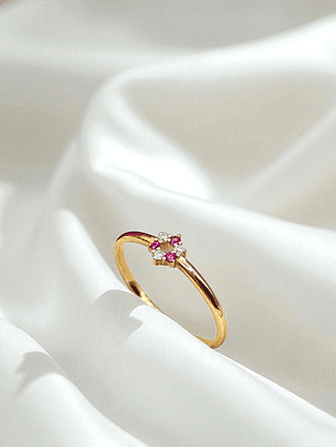 Anillo rosa rubíes con circónes Oro 18k