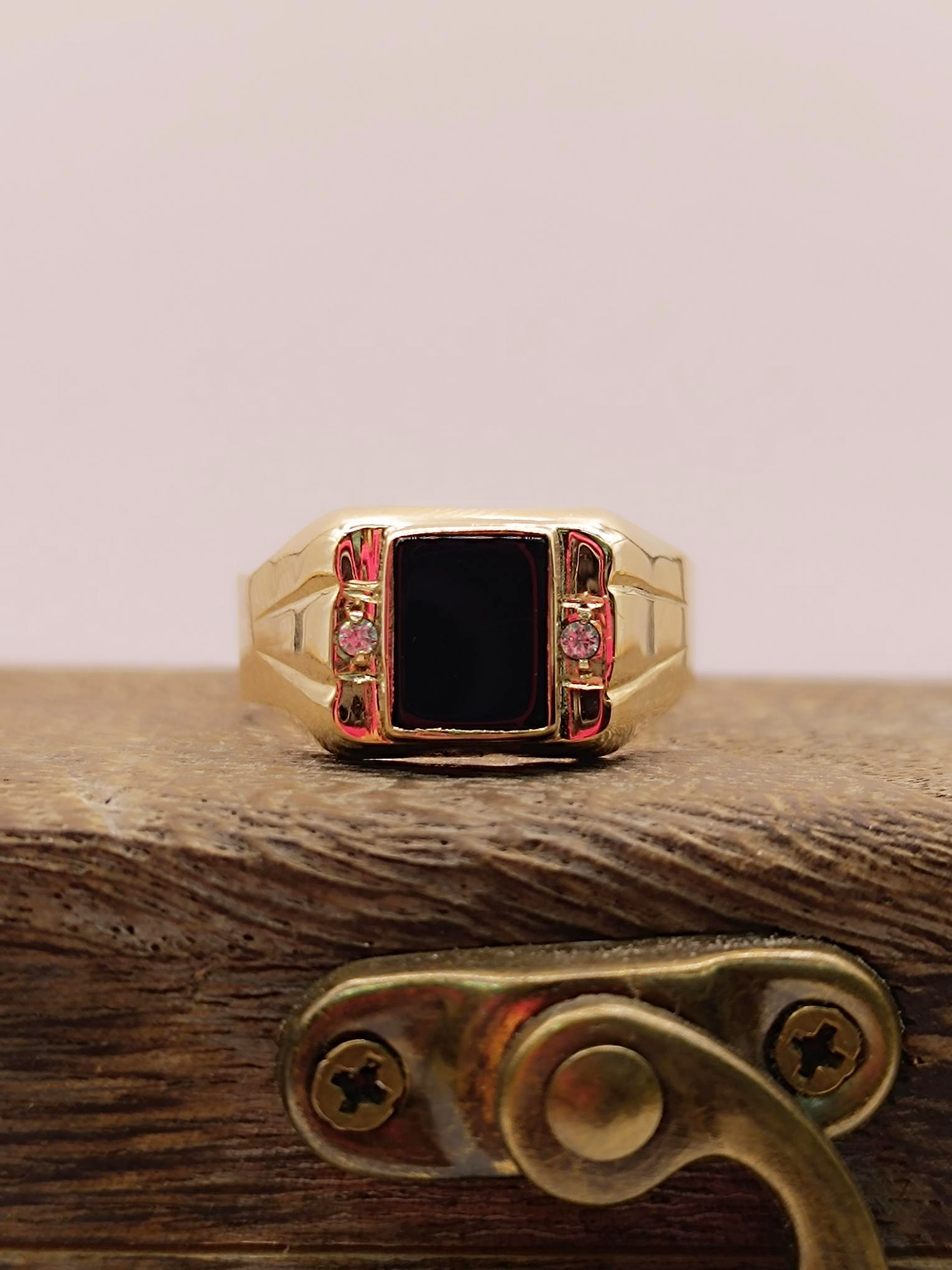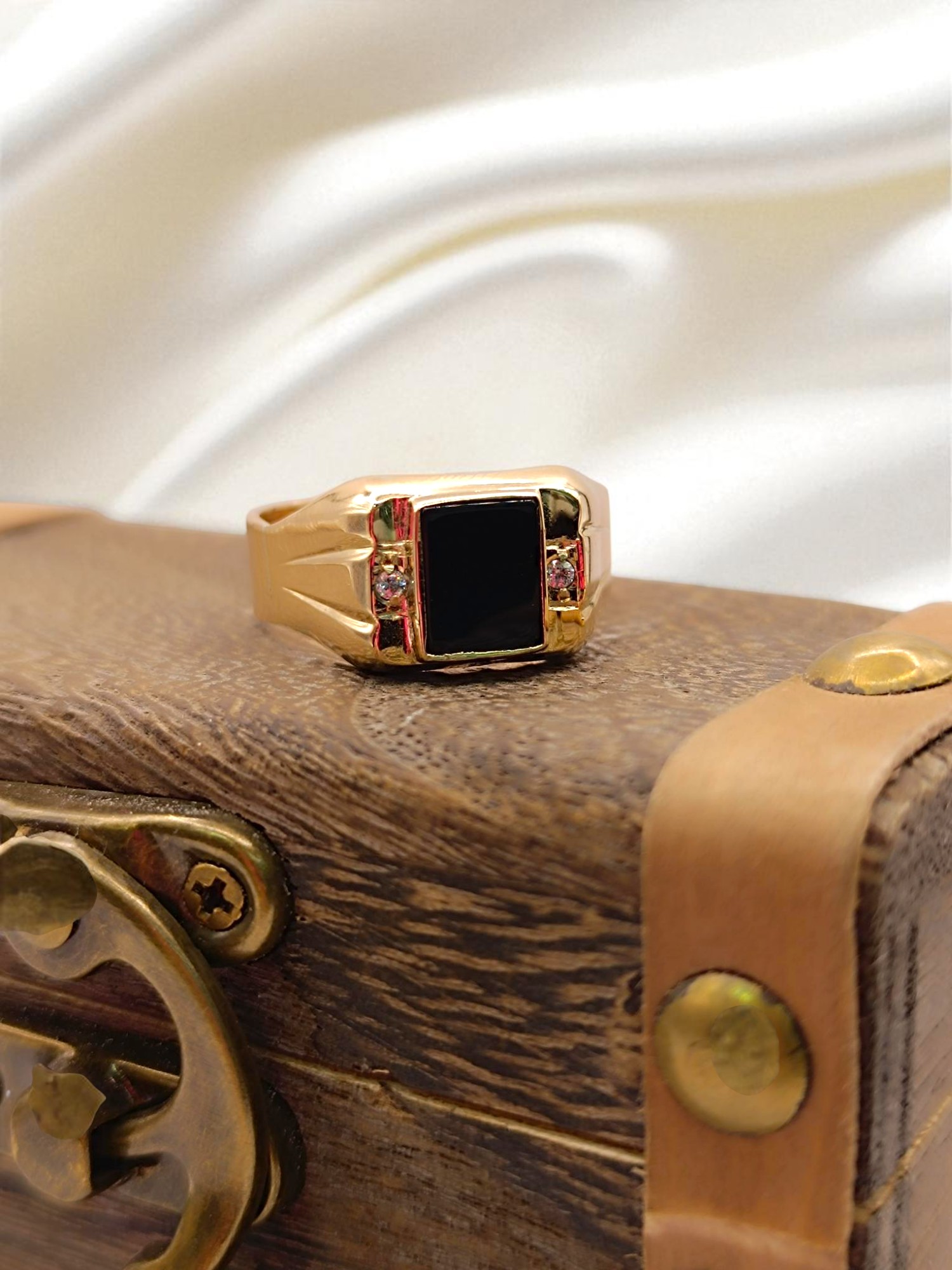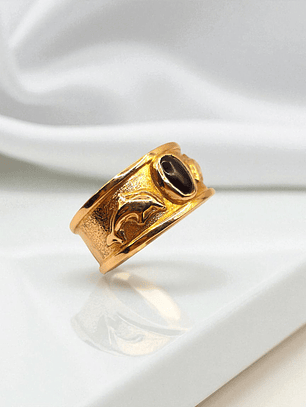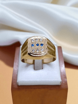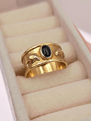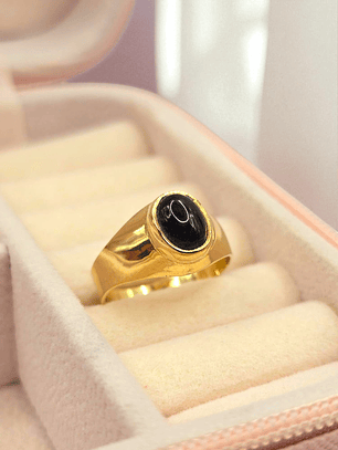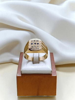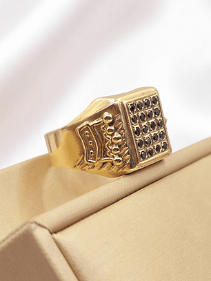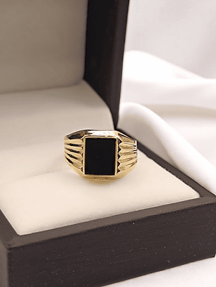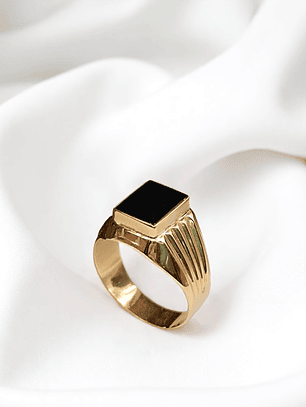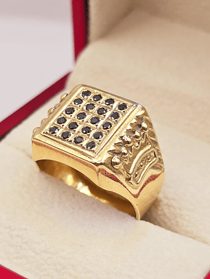 ¡Un toque de misterio y brillo en tu mano! Anillo sello con ónix y circones de 10 grs en oro 18k. Incluye caja de regalo y garantía de por vida sobre la calidad del oro.