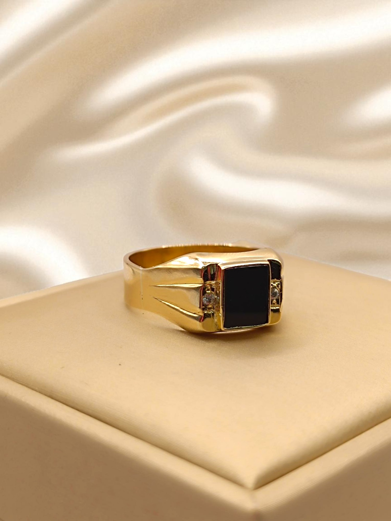 Anillo sello cuadrado onix con circónes grande Oro 18k