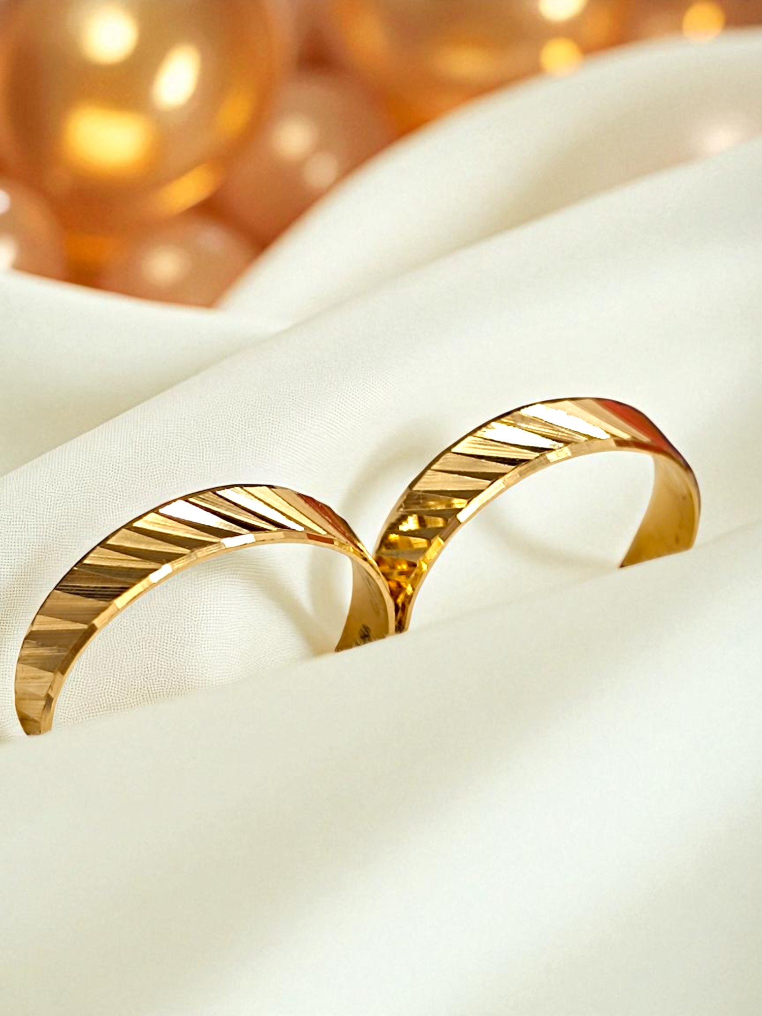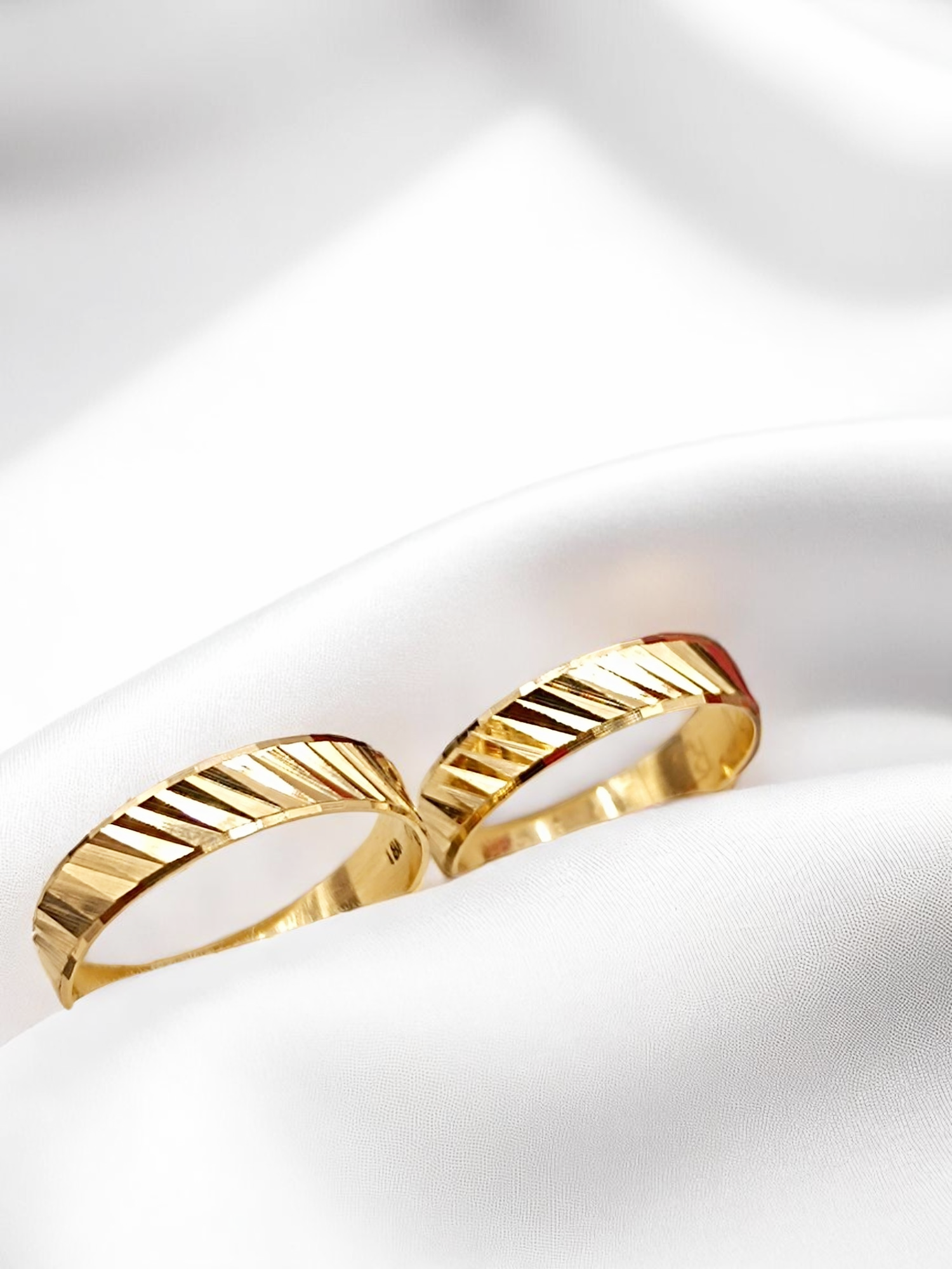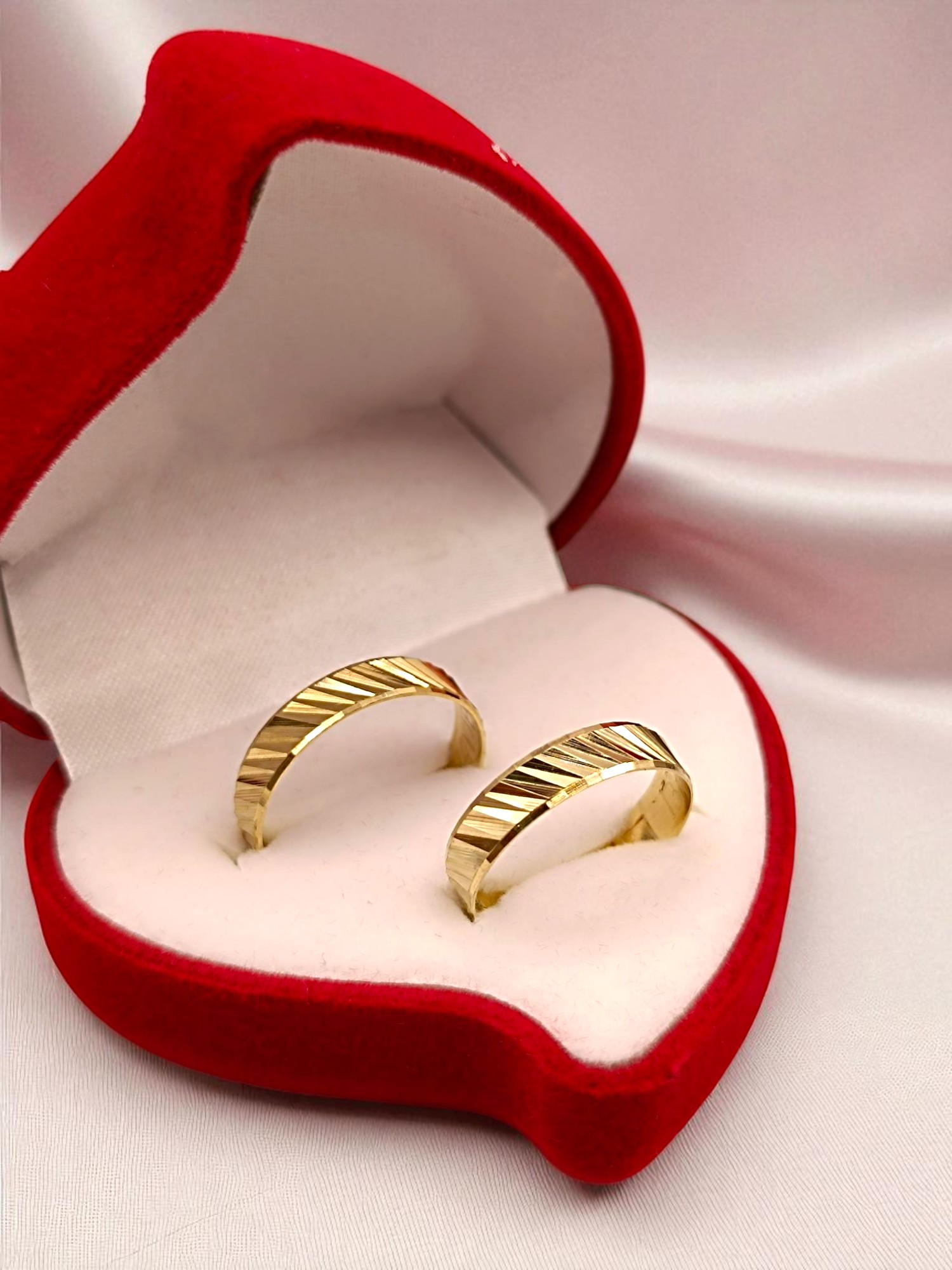 ¡Elegancia moderna para sellar su amor! Argollas de matrimonio satinadas diagonal de 5 mm y 5 grs en oro 18k. Incluye caja de regalo y garantía de por vida sobre la calidad del oro.