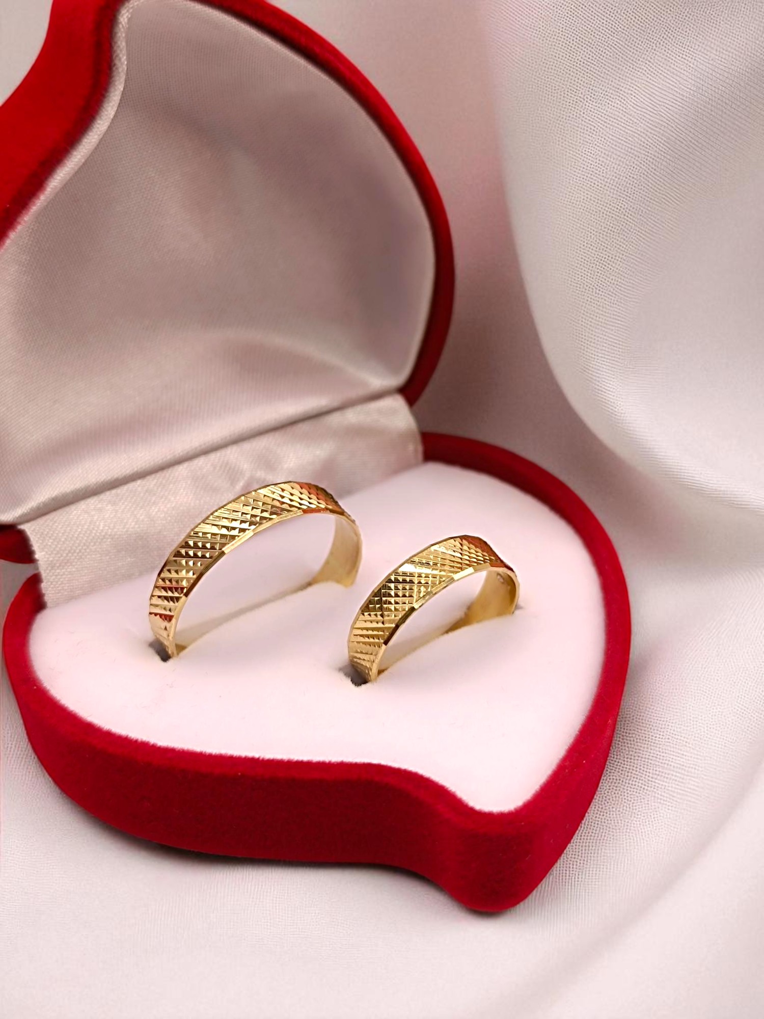 ¡Elegancia y sofisticación para el gran día! Argollas de matrimonio satinadas elegantes de 5 mm y 5 grs en oro 18k. Incluye caja de regalo y garantía de por vida sobre la calidad del oro.