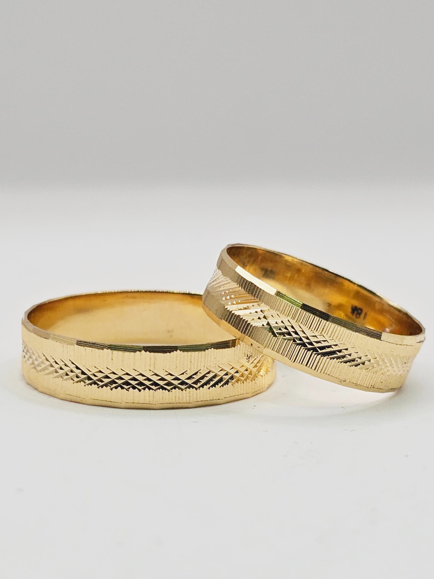Argollas de matrimonio talladas rayas y rombos 5 mm Oro 18k