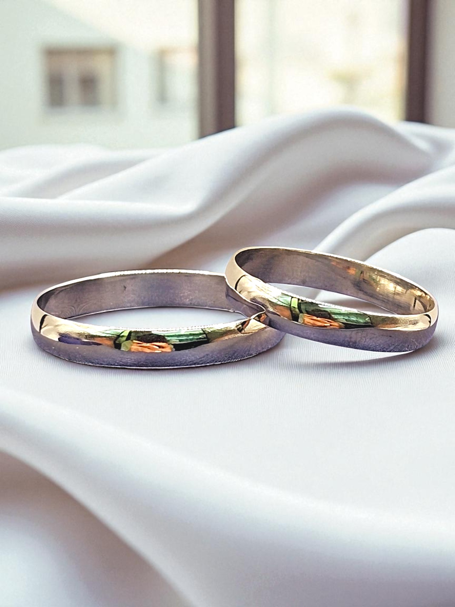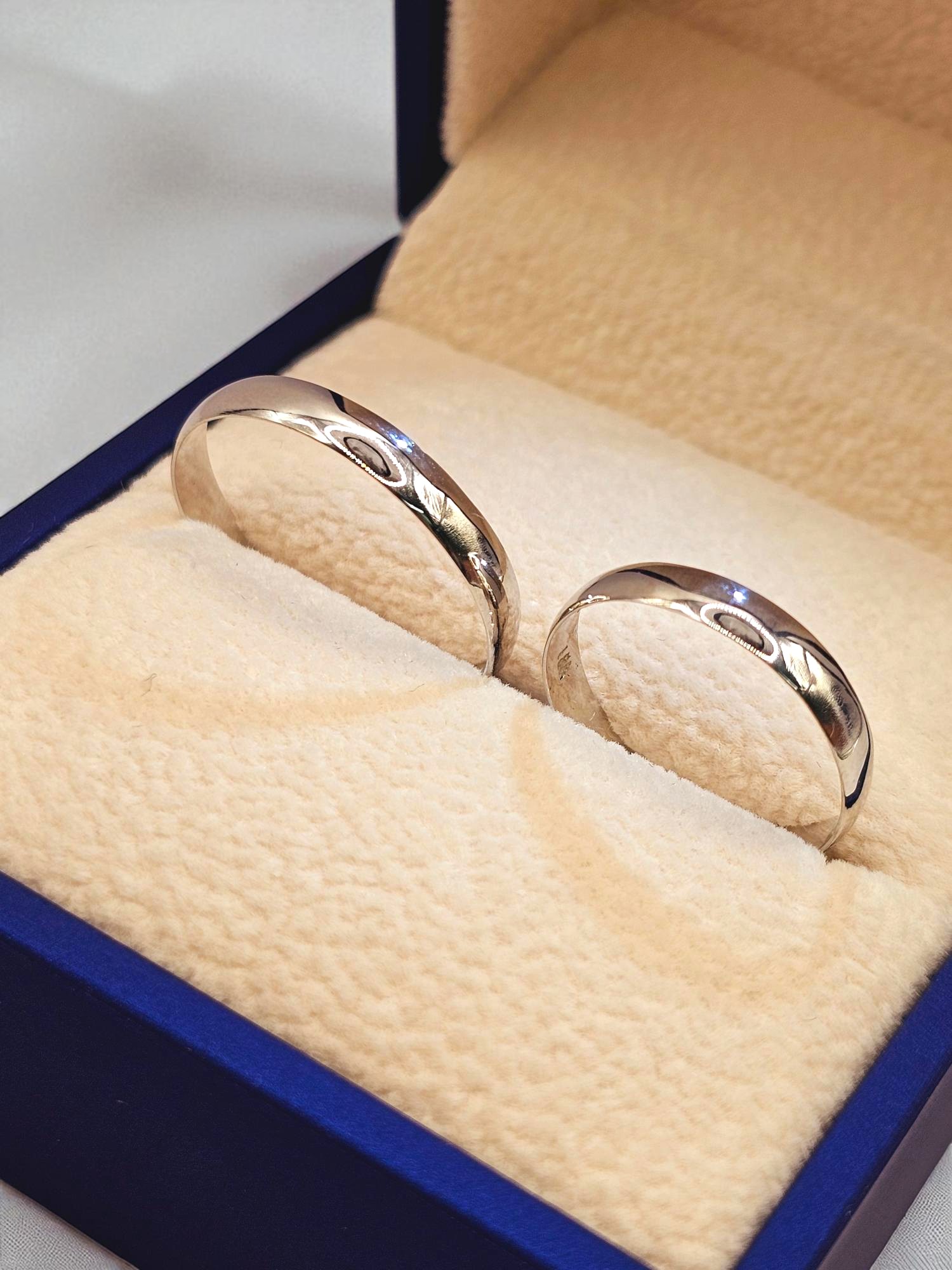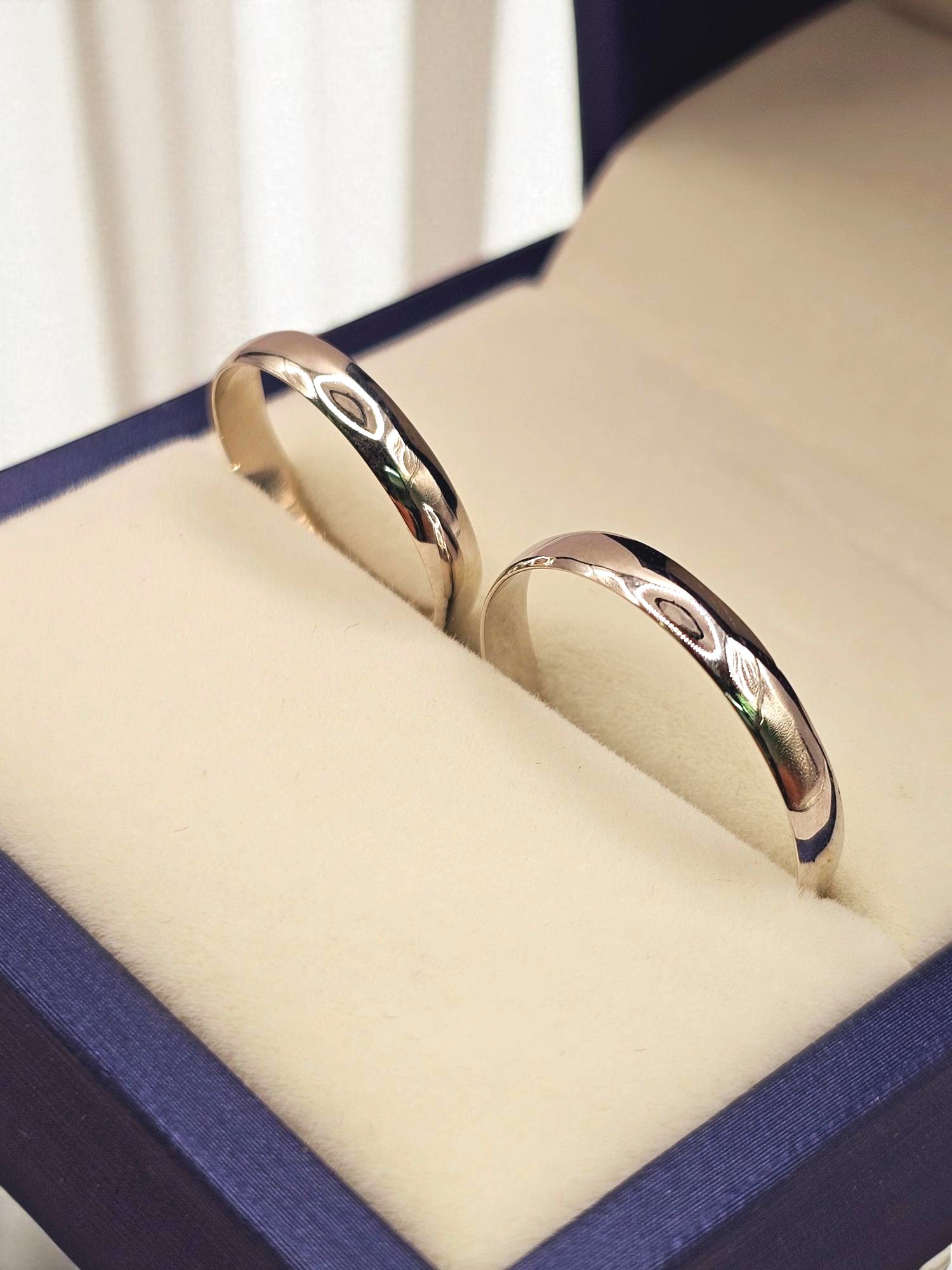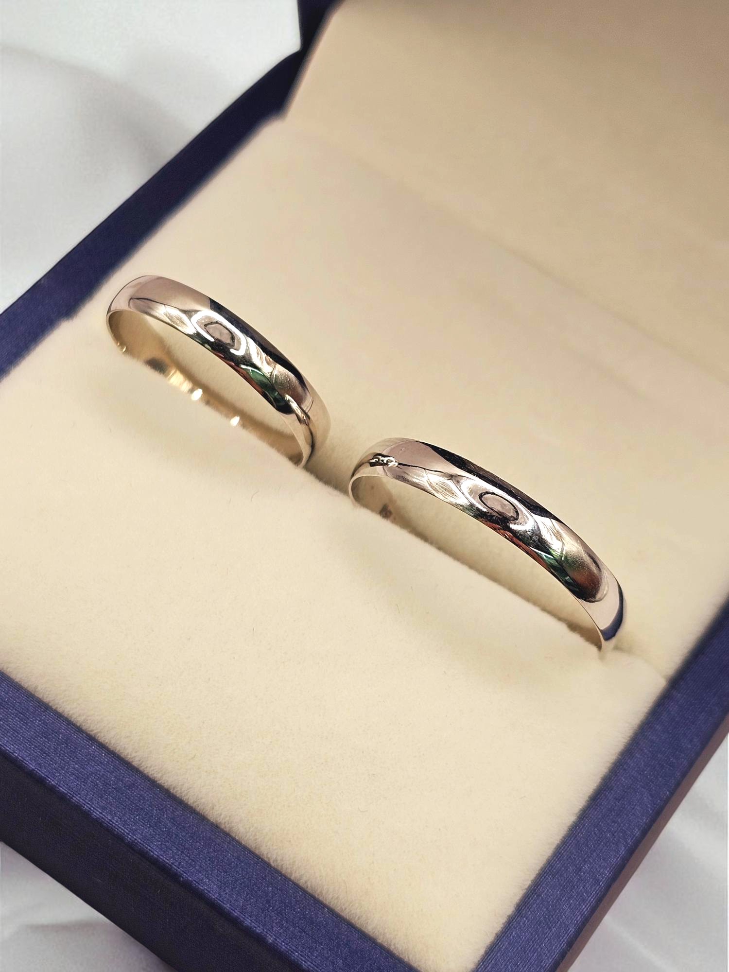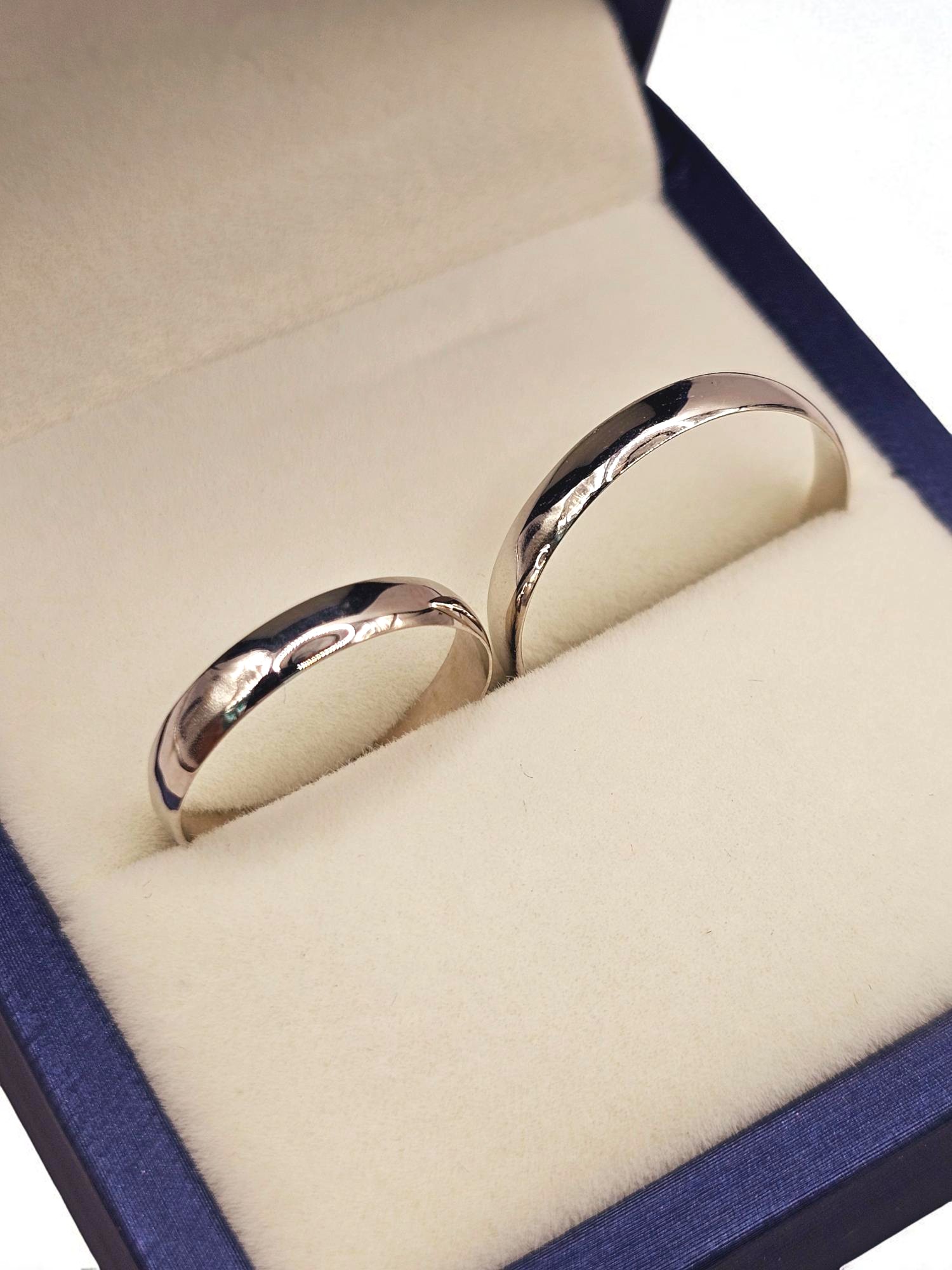 ¡Unión con elegancia y modernidad! Argollas de matrimonio media caña de 3 mm y 2.5 grs en oro blanco 18k. Incluye caja de regalo y garantía de por vida sobre la calidad del oro.