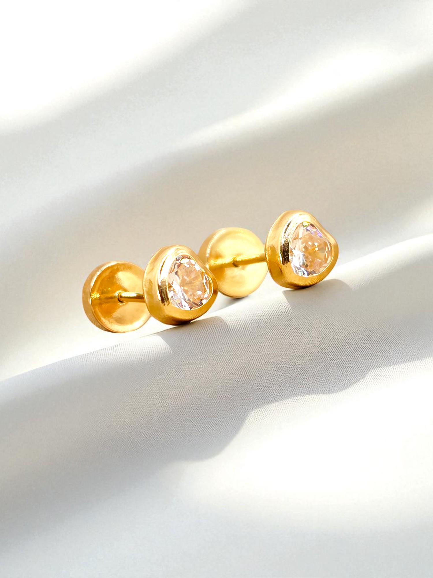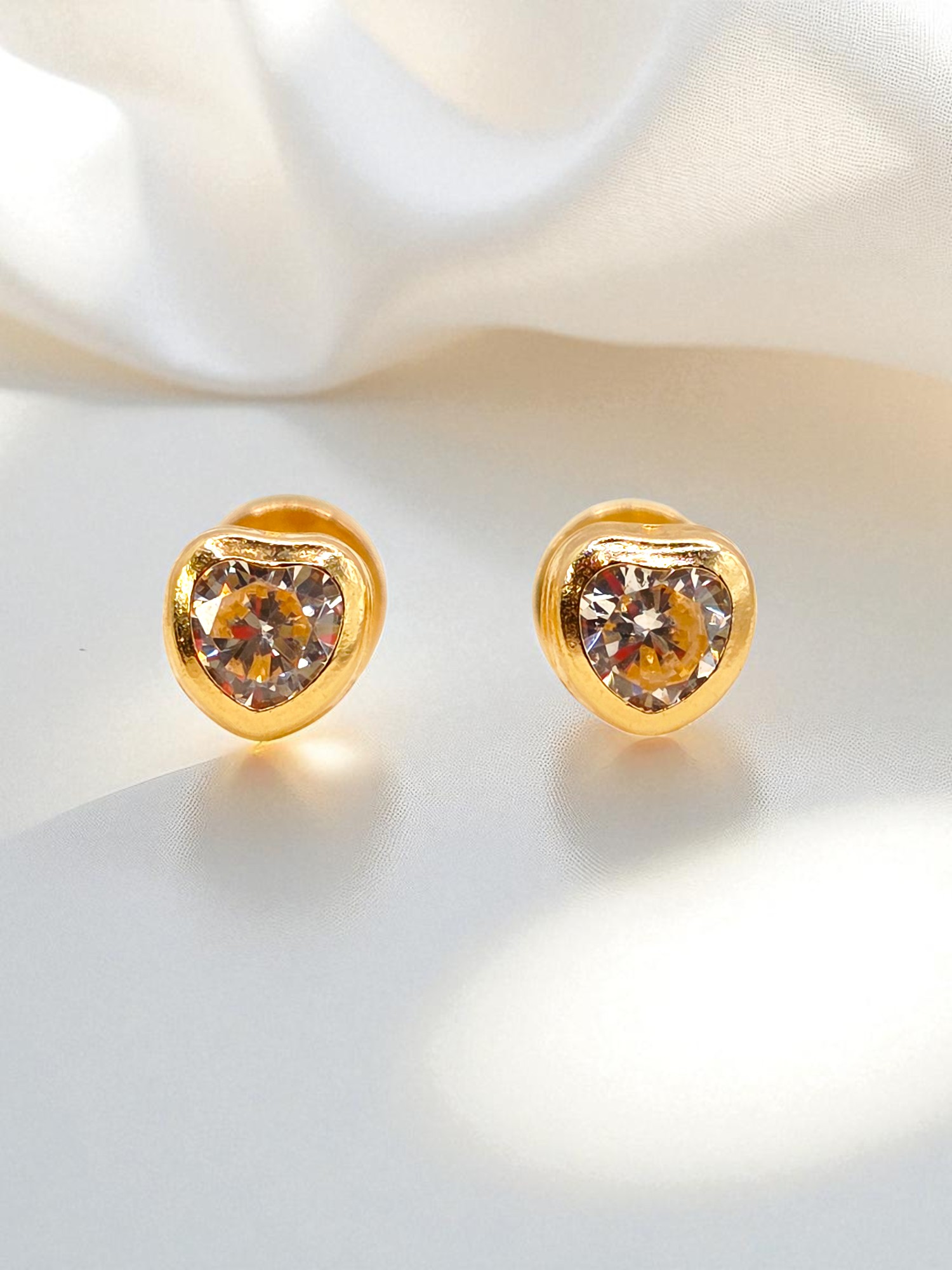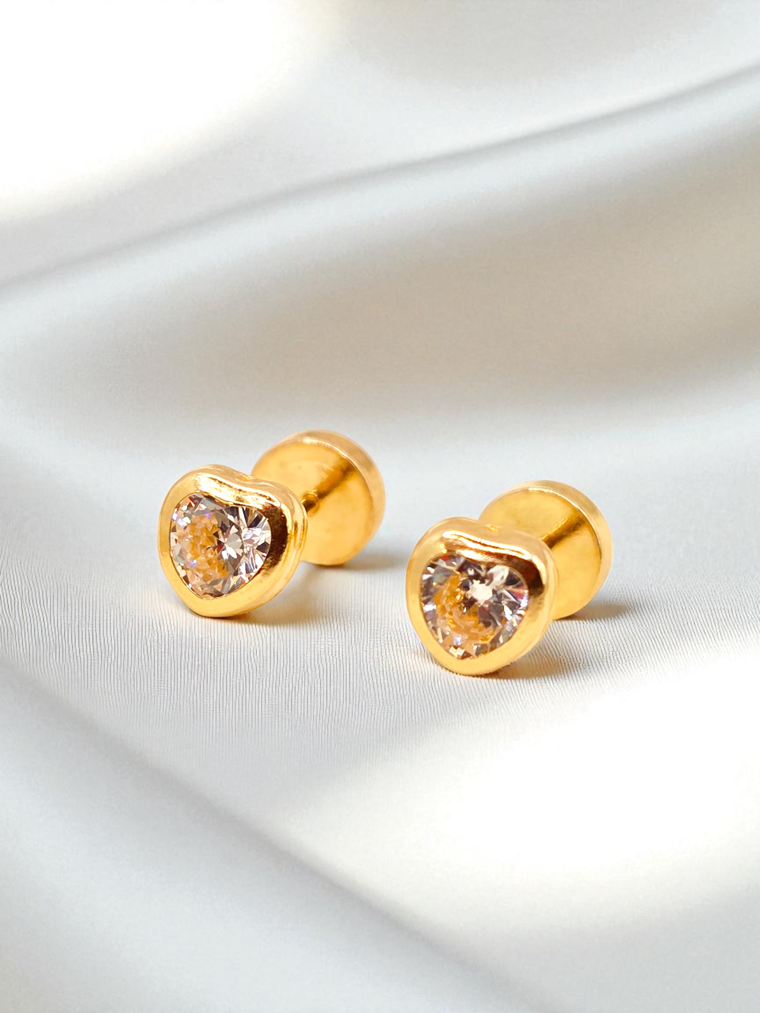 Aros abridores corazón circón Oro 18k