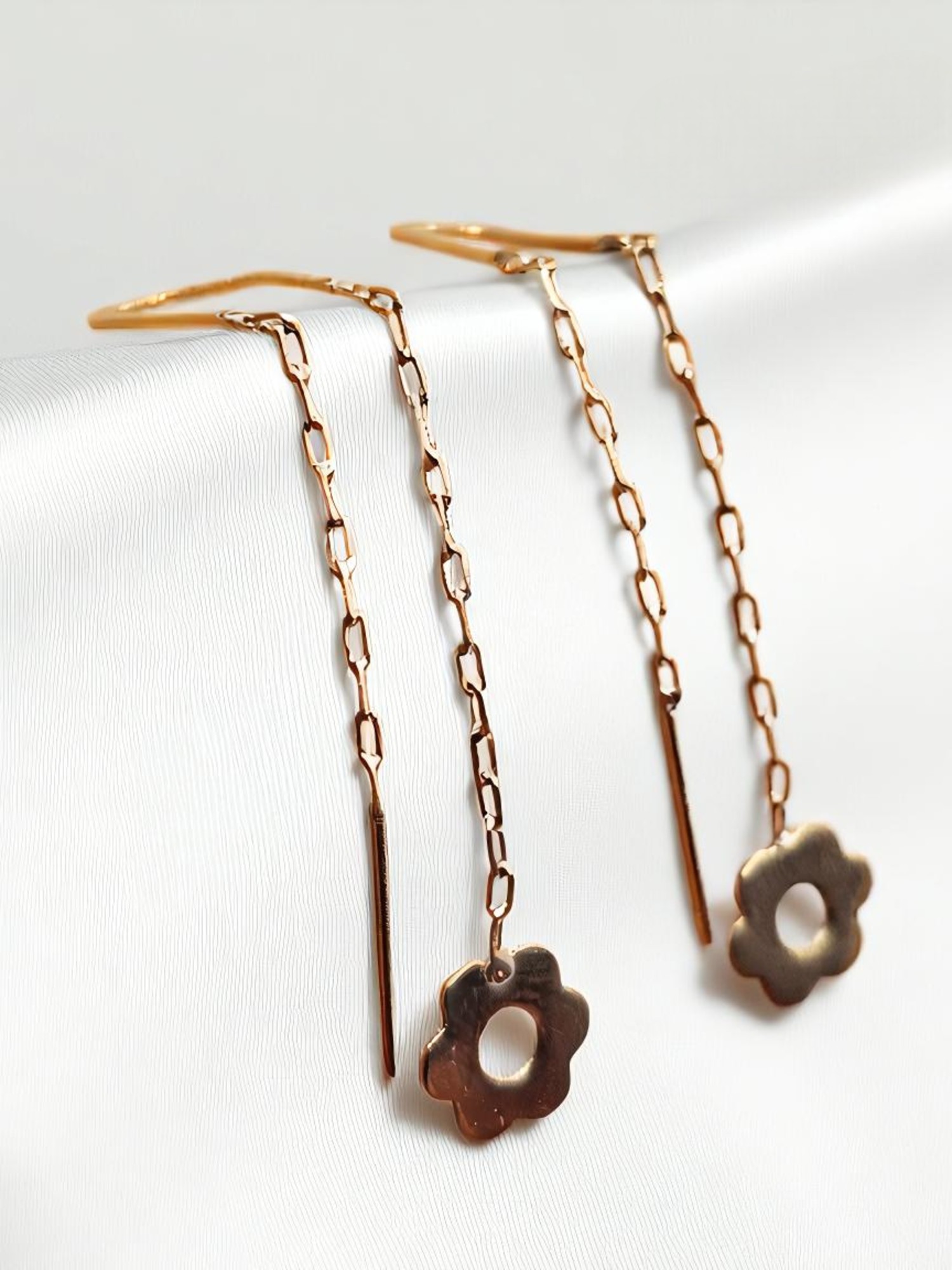 Aros cadena con flores Oro 18k