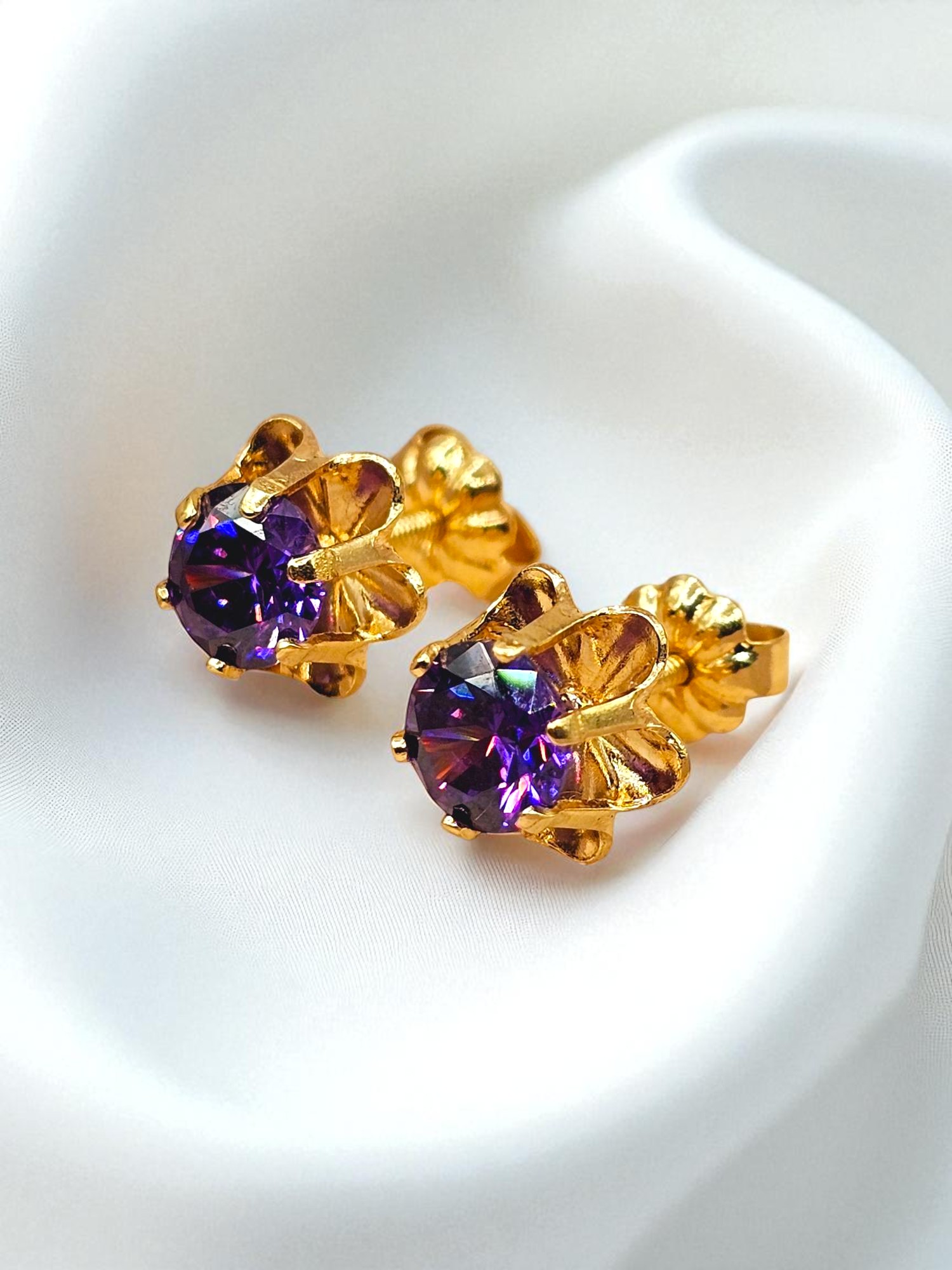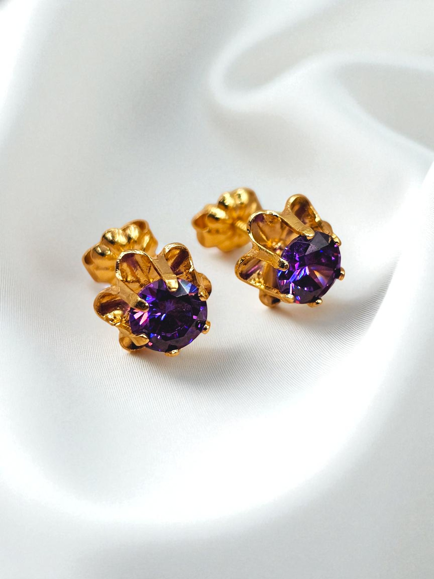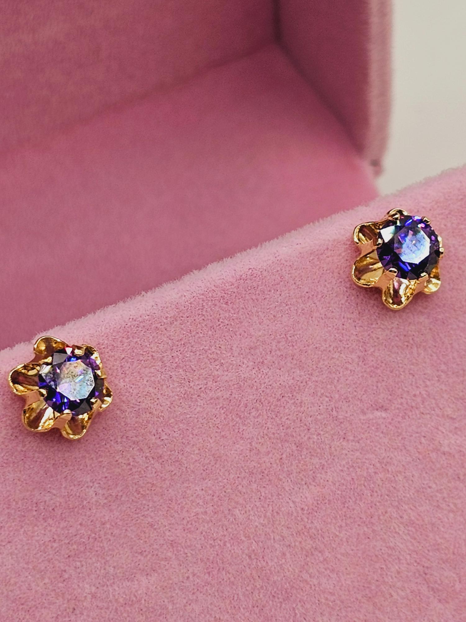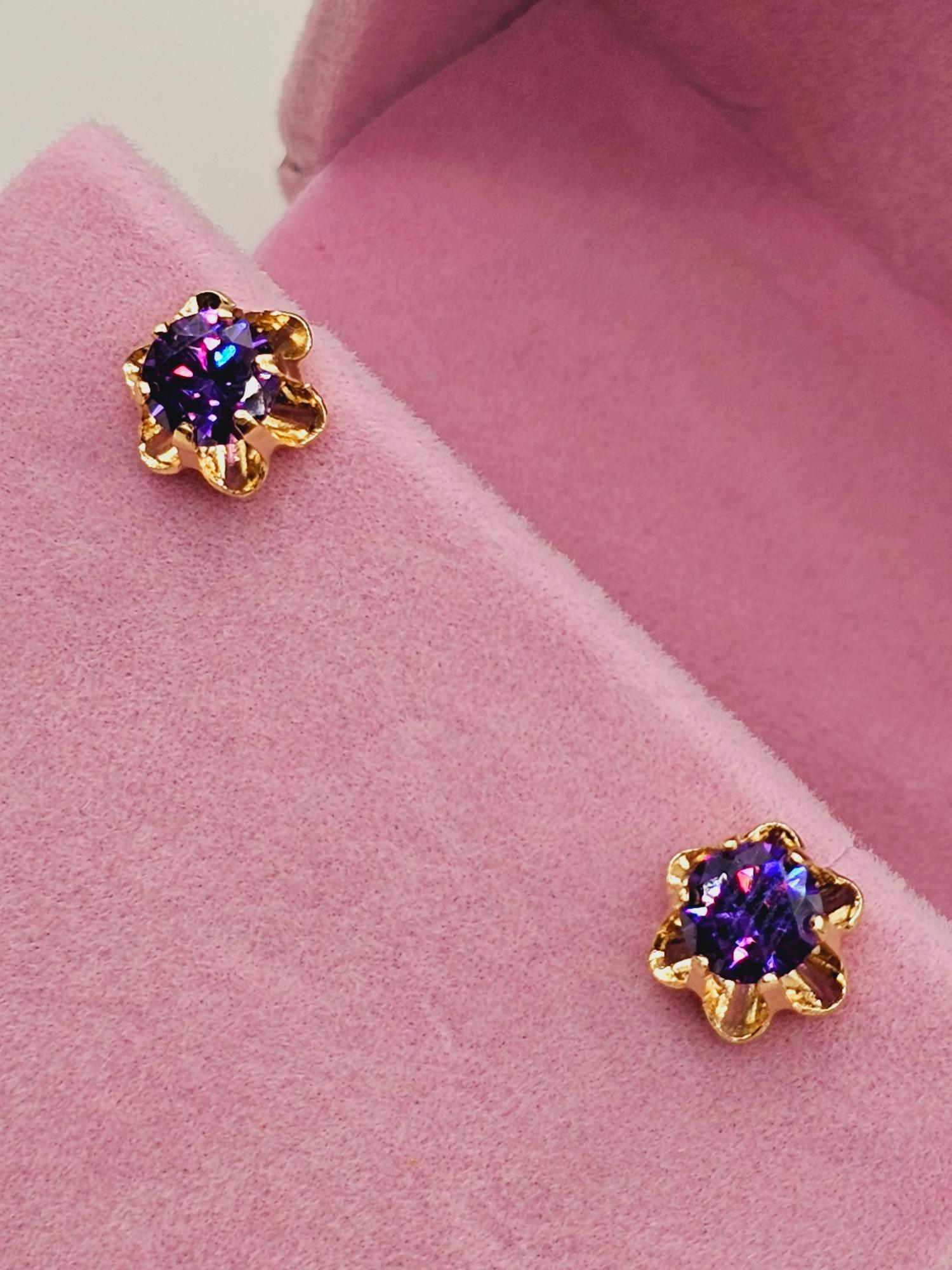 ¡Elegancia italiana con un toque de color y sofisticación! Aros chatón Italiano con amatista de 9 mm y 2 grs en oro 18k. Incluye caja de regalo y garantía de por vida sobre la calidad del oro.