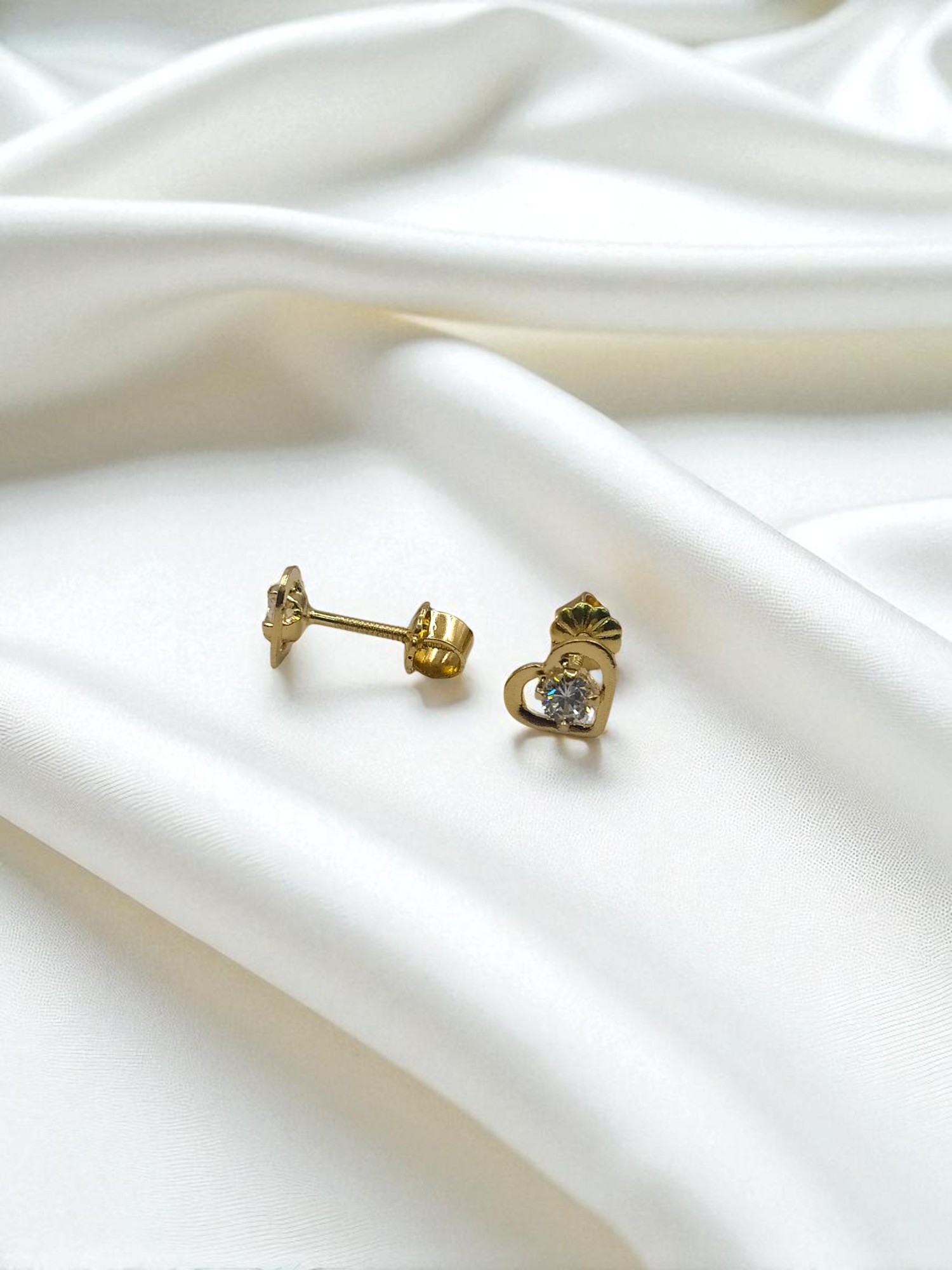 ¡Brillo y amor en cada detalle! Aros de oro de 18 quilates con forma de corazón y detalles de circón, miden 7 mm. Incluye caja de regalo y garantía de por vida sobre la calidad del oro.