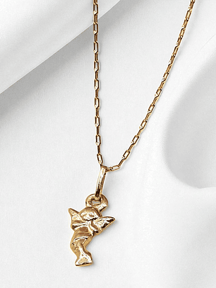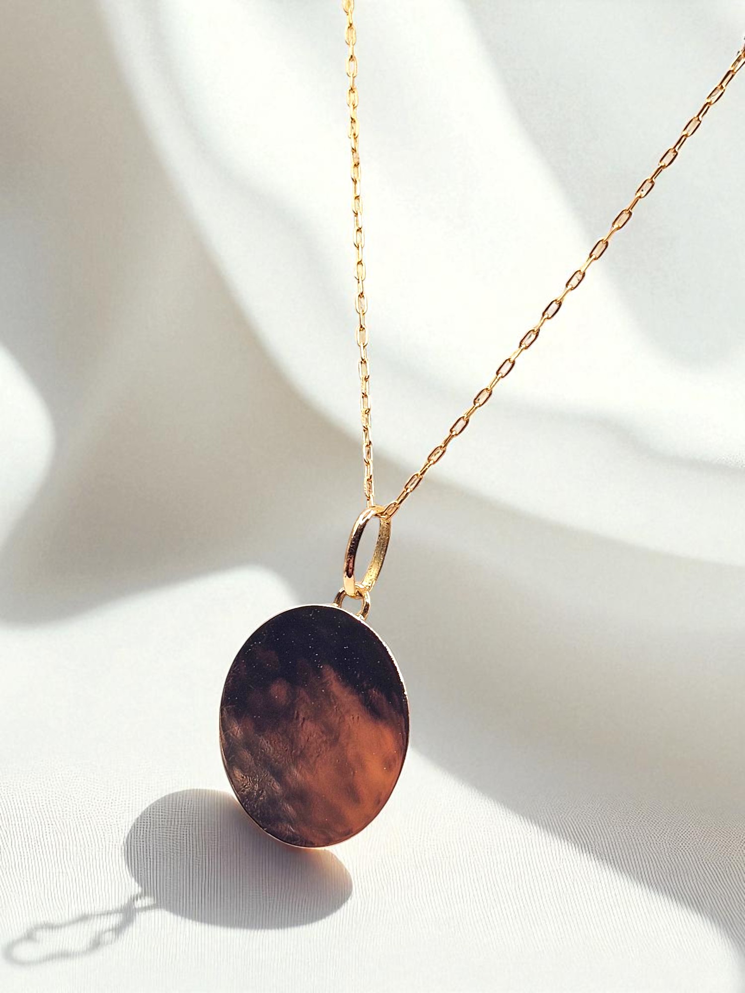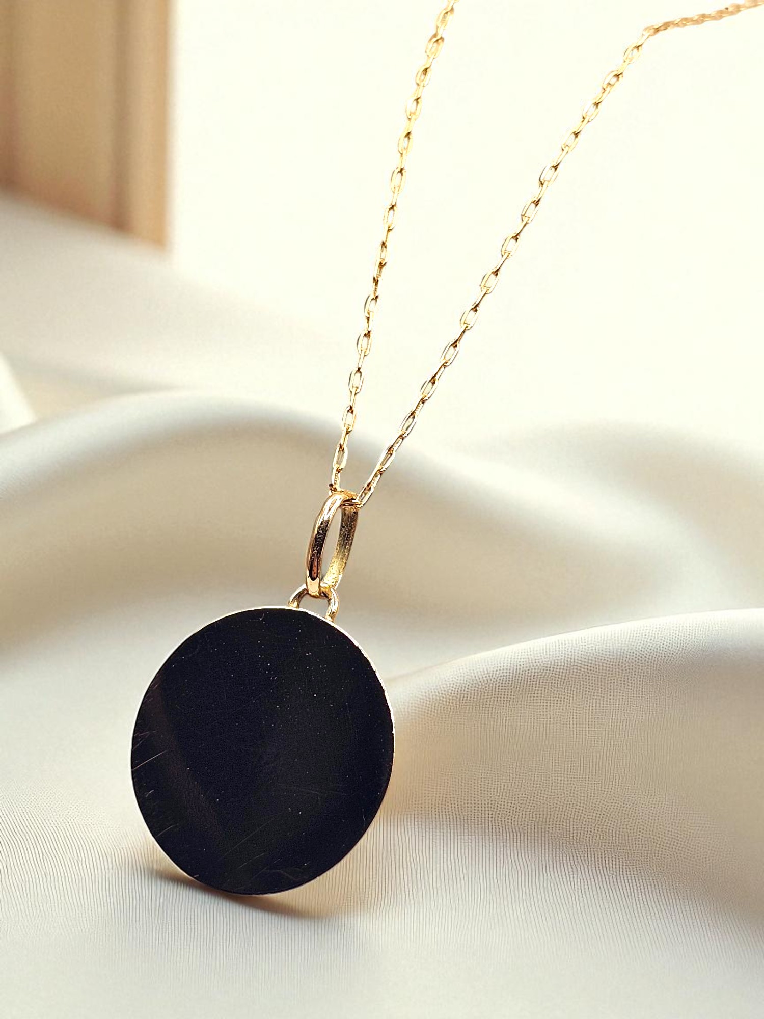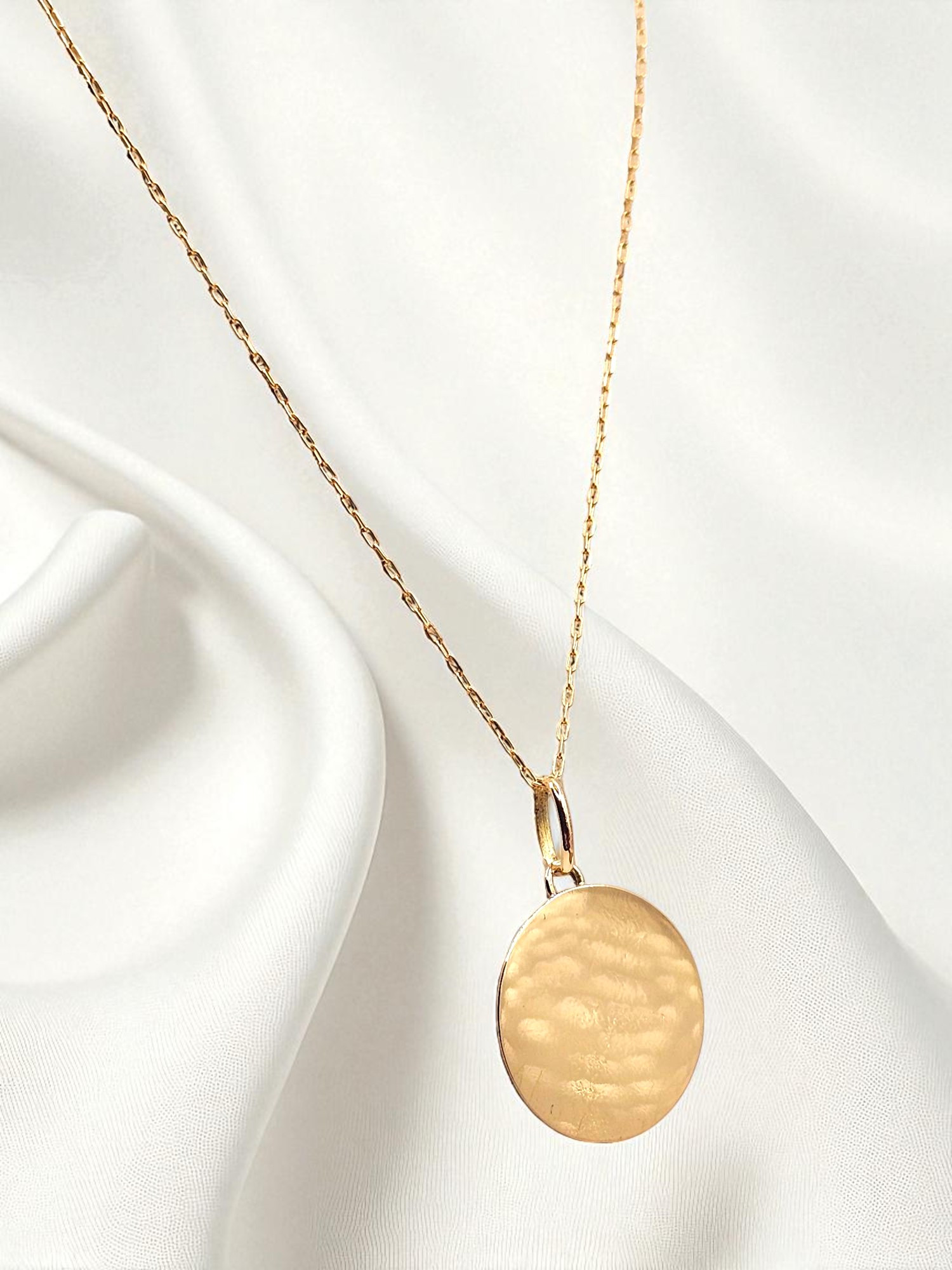 Cadena eslabon limado 50 cm y colgante disco 1.5 cm Oro 18k