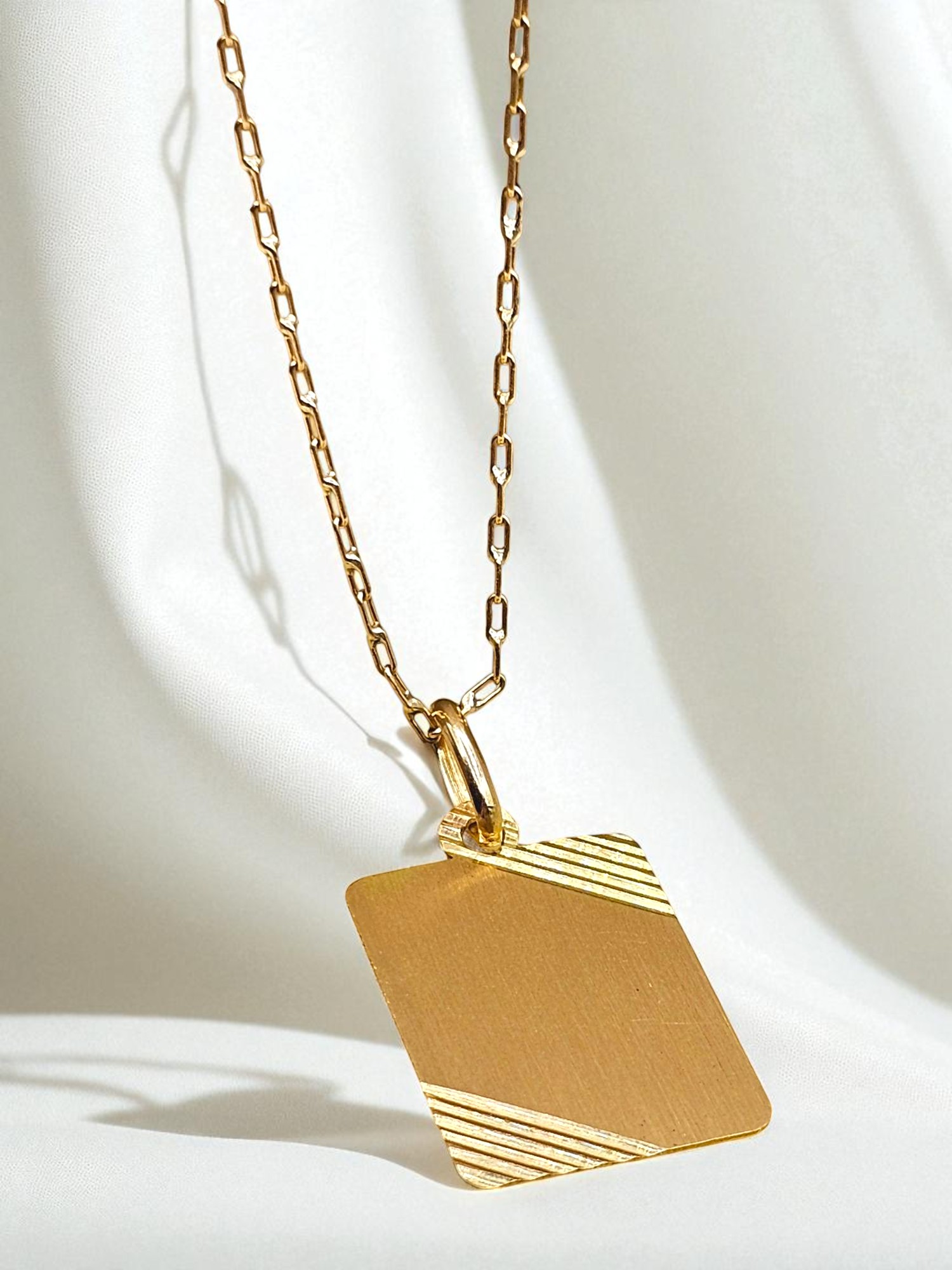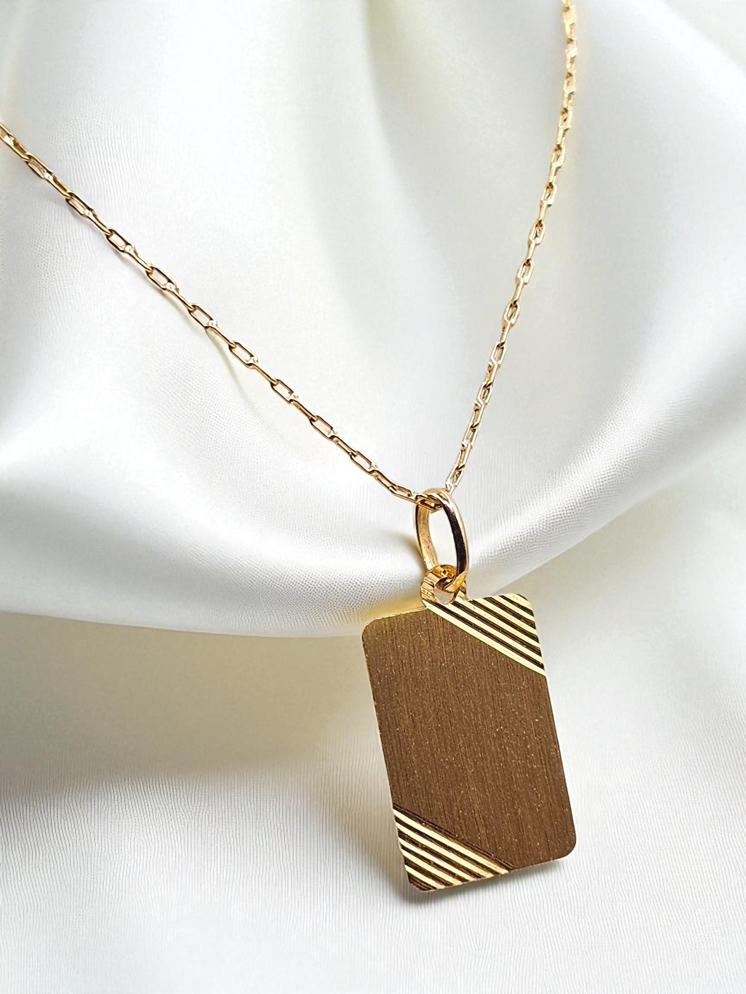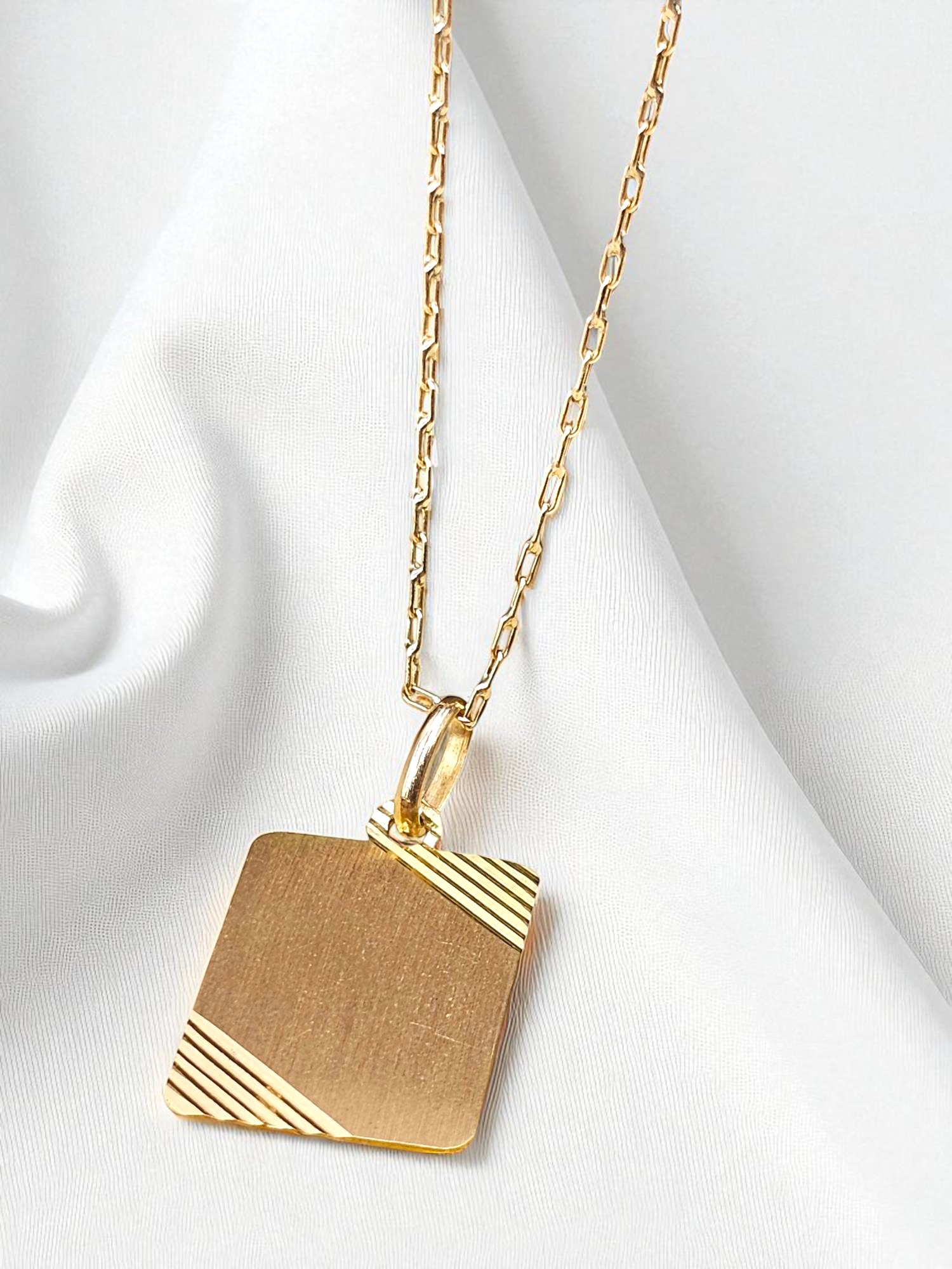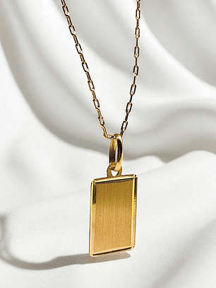 Cadena eslabon limado 50 cm y placa 2 cm Oro 18k