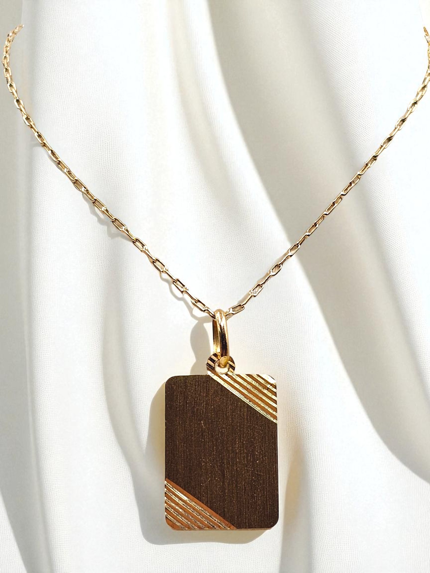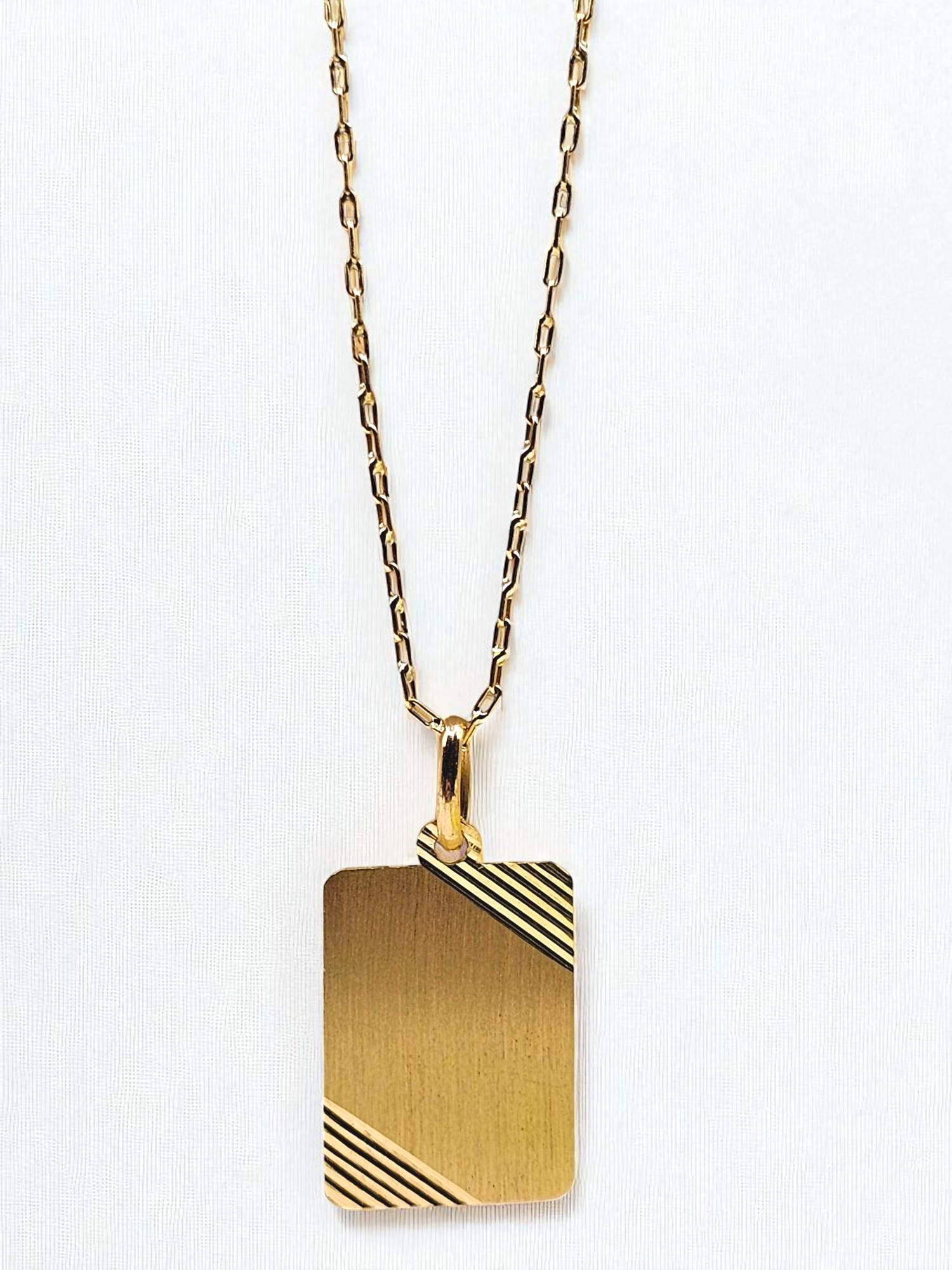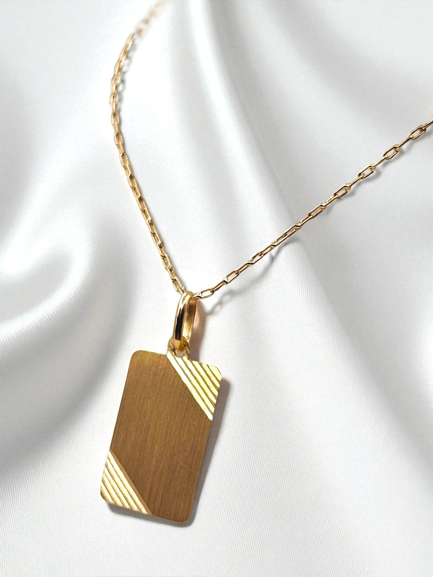 Cadena eslabon limado 50 cm y placa 2 cm Oro 18k