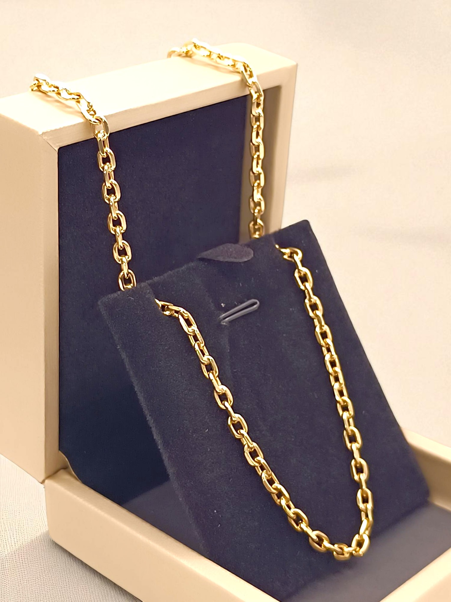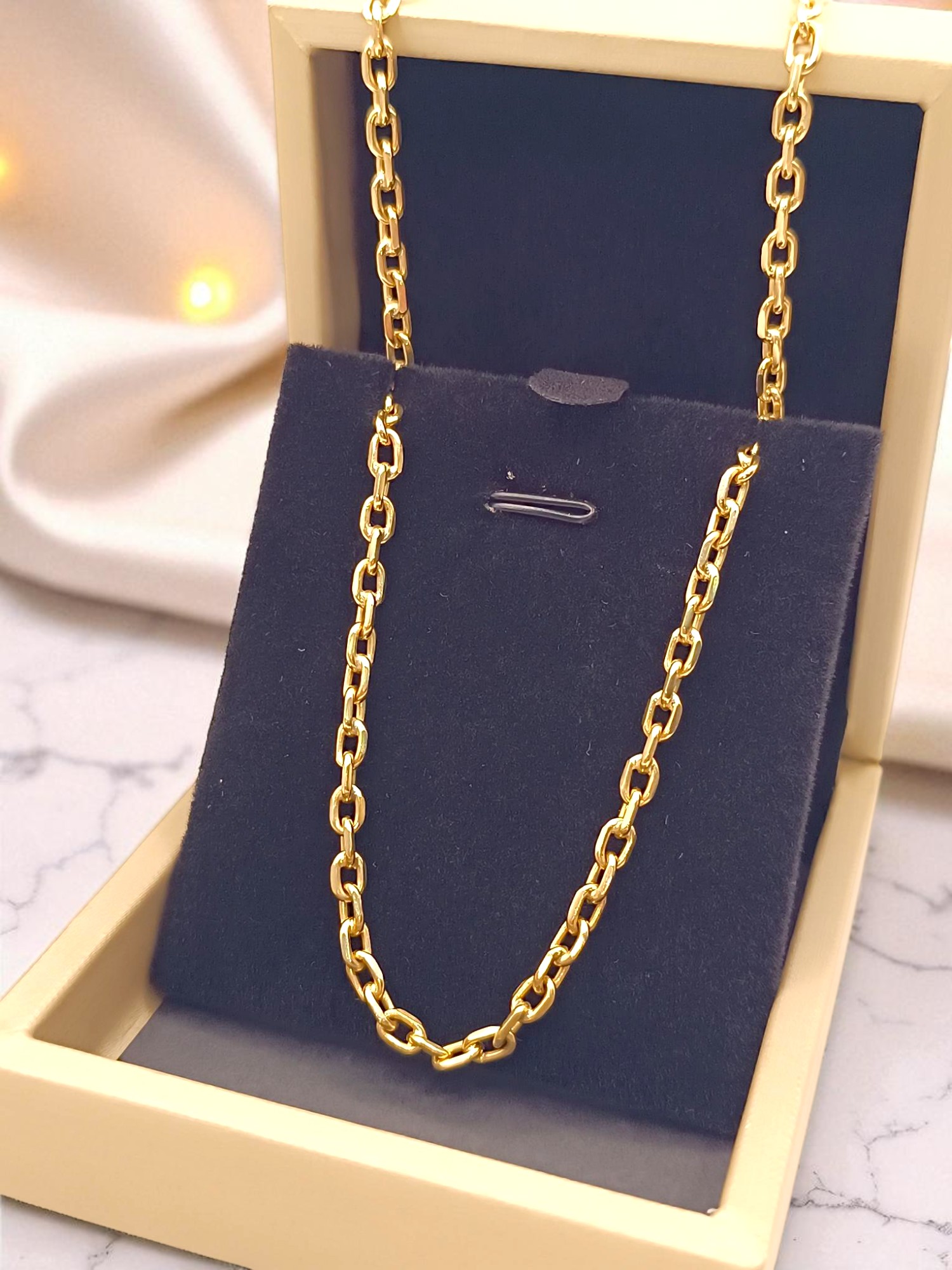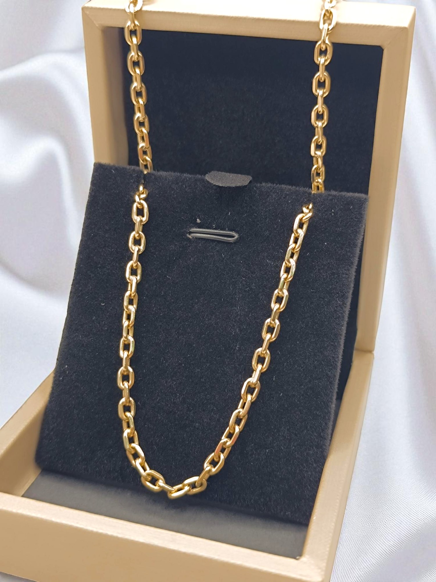 ¡Elegancia sólida y clásico! Cadena limada de 60 cm y 30 grs en oro 18k. Incluye caja de regalo y garantía de por vida sobre la calidad del oro.