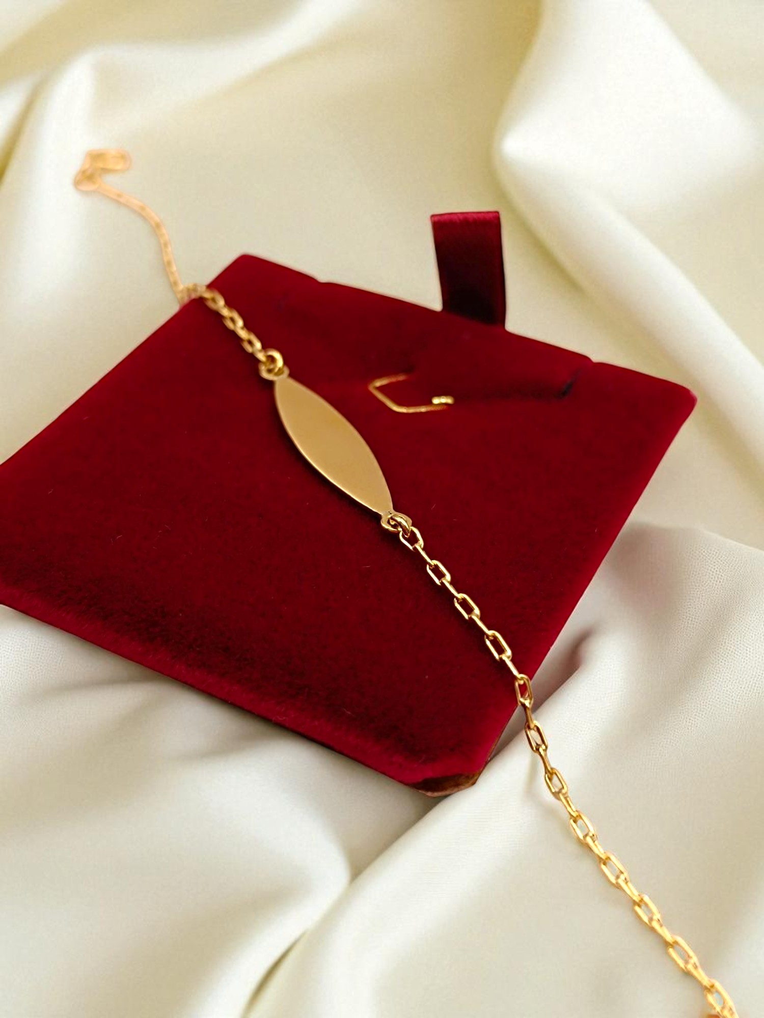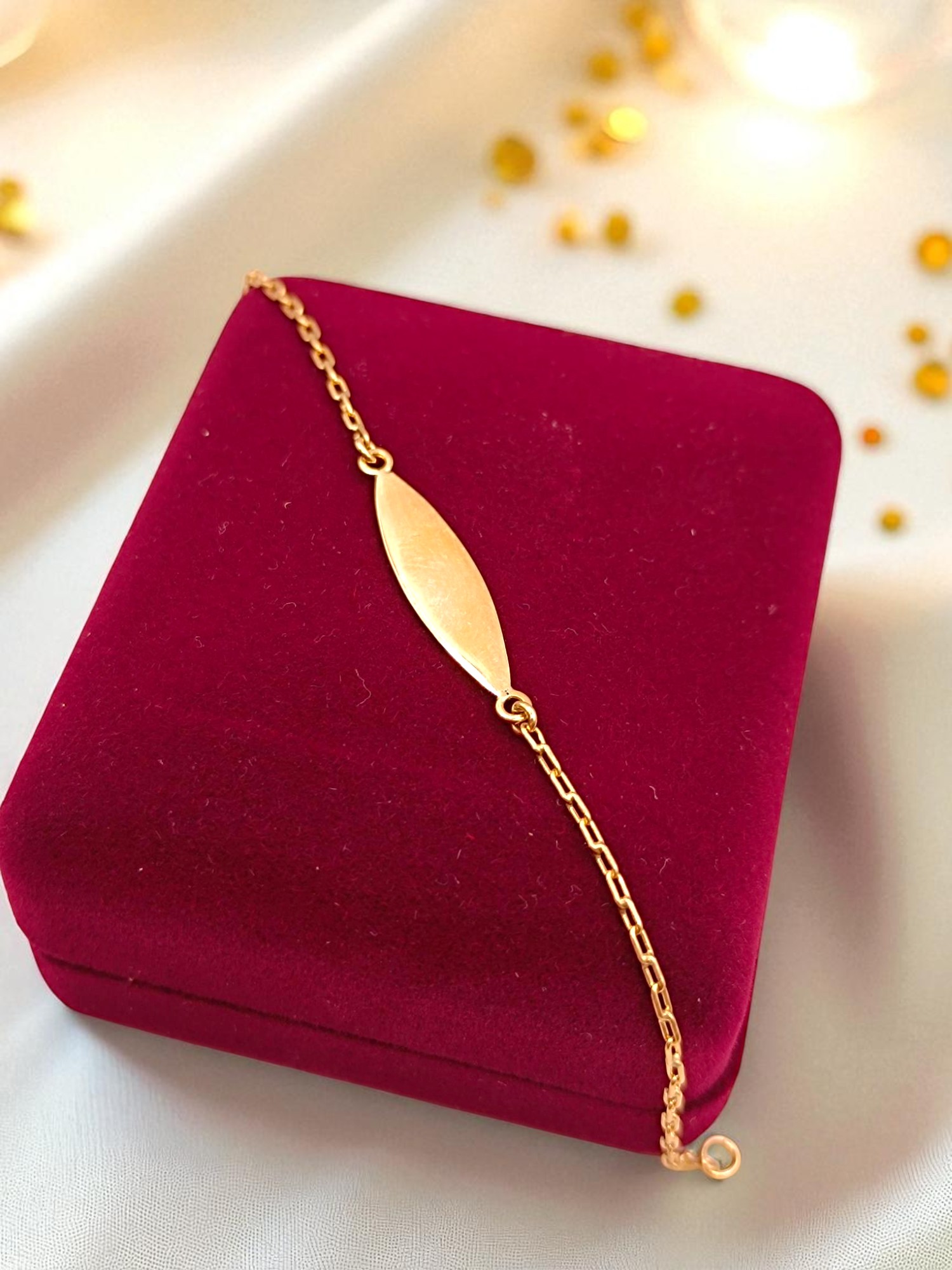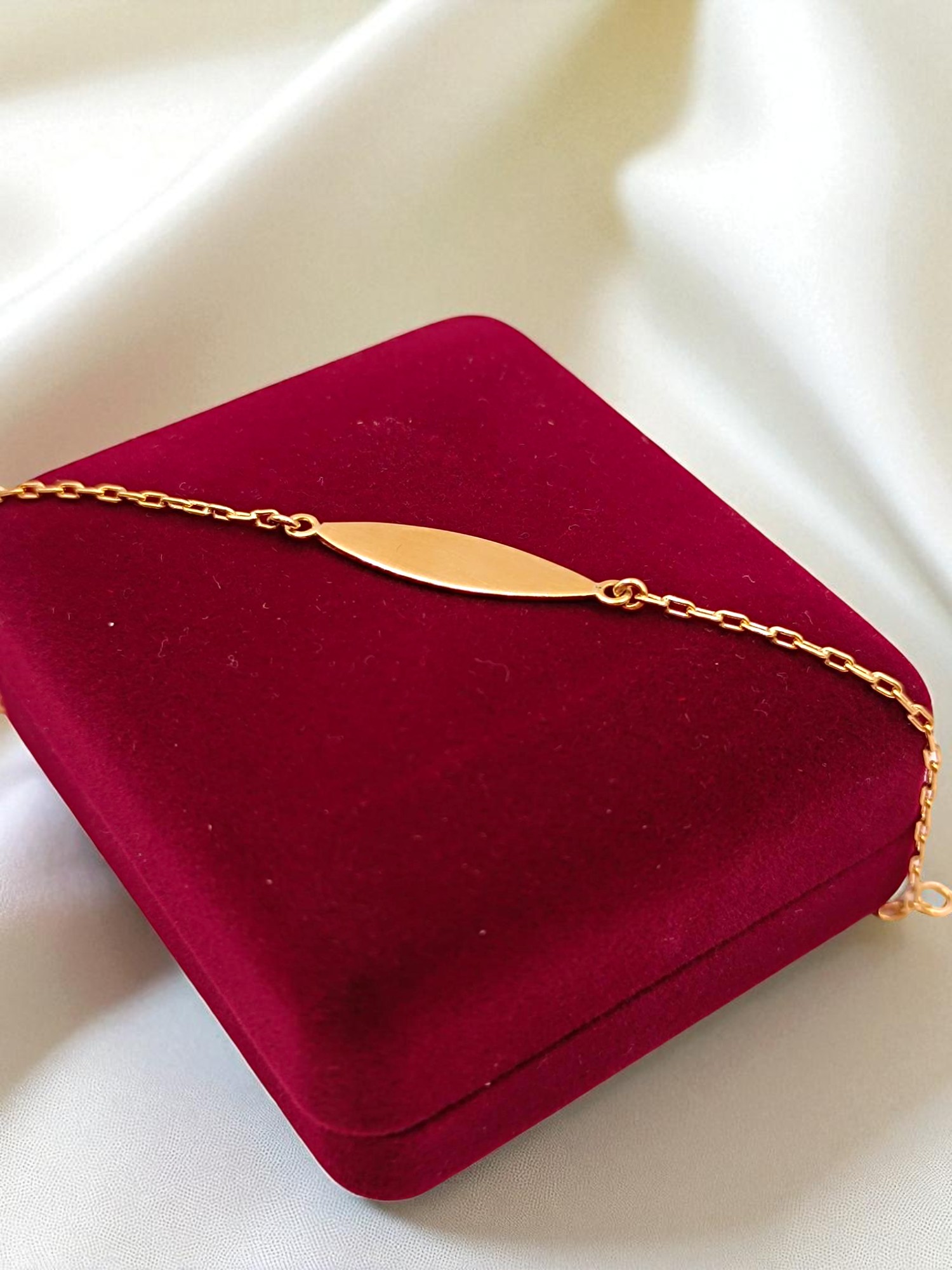 ¡Un regalo tierno y personalizado! Pulsera para niña/o con placa de identificación de 1.7 grs en oro 18k. Incluye caja de regalo y garantía de por vida sobre la calidad del oro.