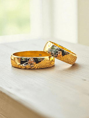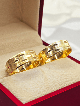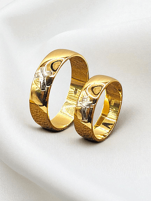 Argollas de matrimonio talladas rayas 5 mm Oro 18k